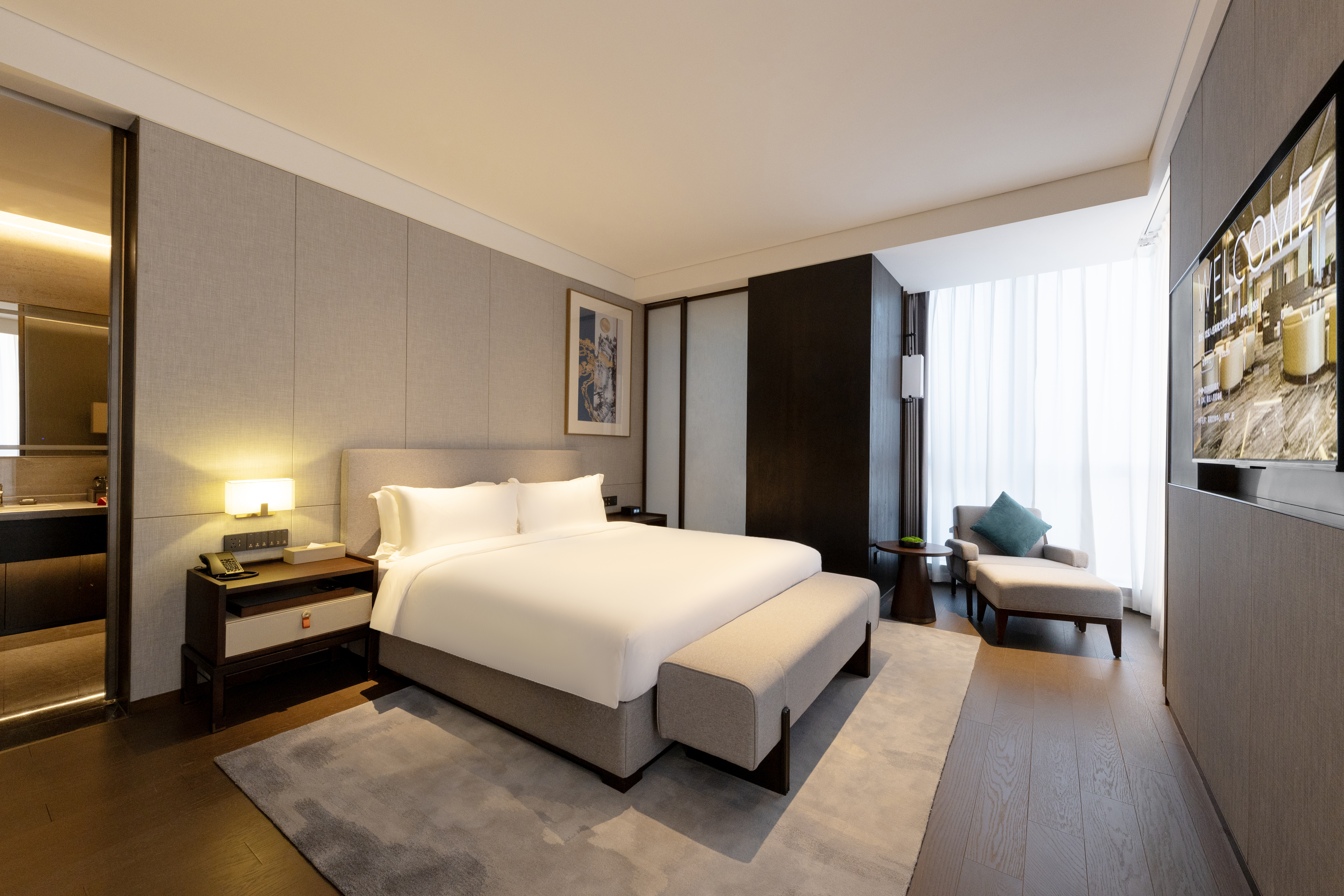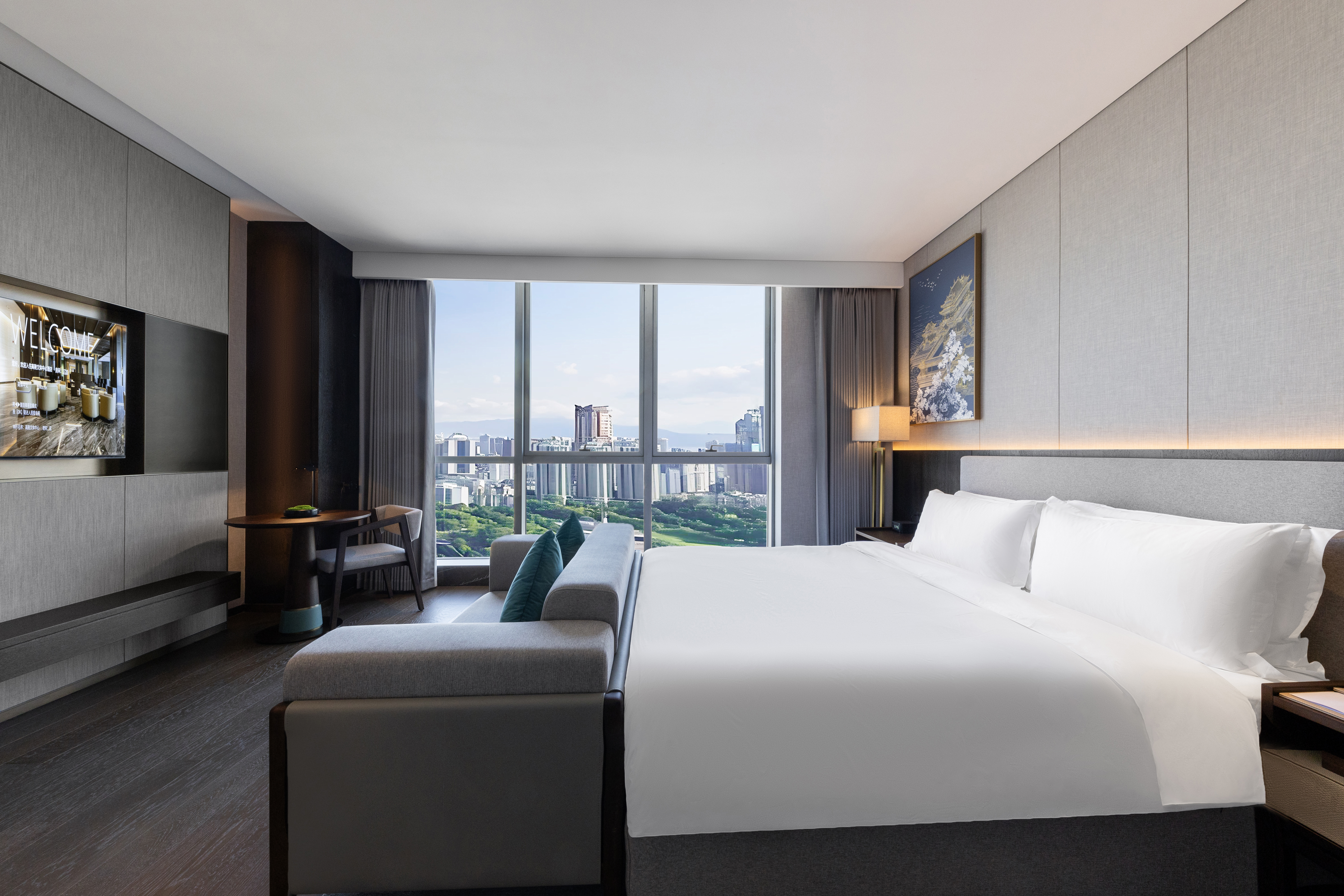 豪华大床房+超大落地窗+金可儿床垫+高楼层静谧舒享